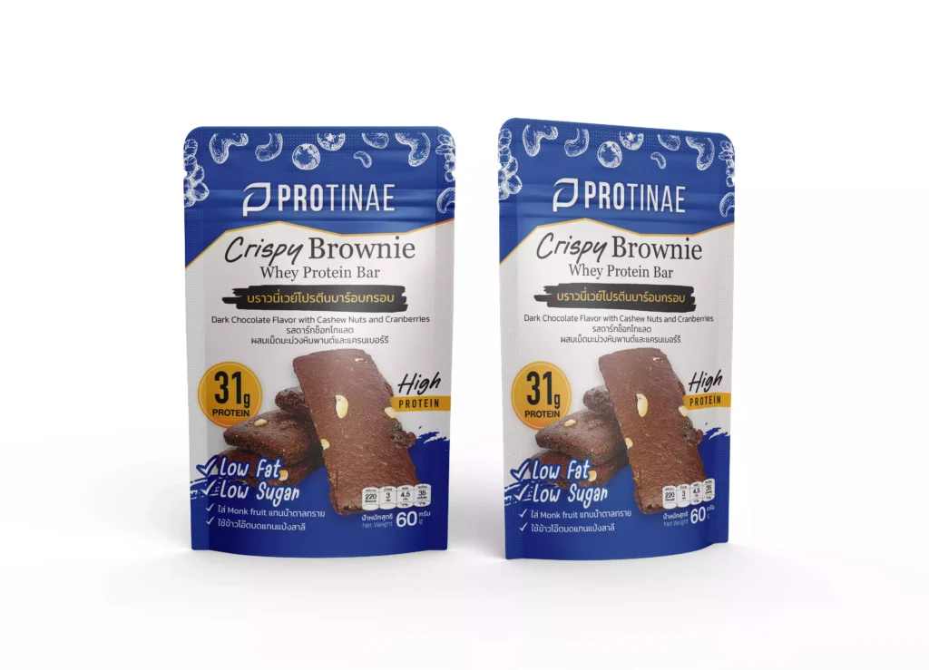 บราวนี่เวย์โปรตีนบาร์อบกรอบ